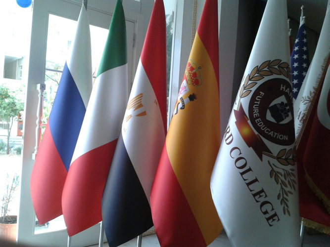 Bayrakların üretiminde kaliteli kumaşlar ve canlı baskı teknikleri kullanılarak, şıklık ve dayanıklılık bir arada sunulur. Bayrağın monte edildiği direk ve kaideler, iç mekân estetiğine uygun şekilde krom (gümüş renk) veya pirinç (sarı renk) malzemeden üretilen iki farklı modelde kullanıcıya sunulmaktadır. Gerekli tüm detaylar, kullanım alanına göre titizlikle planlanarak üretim ve montaj süreci profesyonelce tamamlanır.