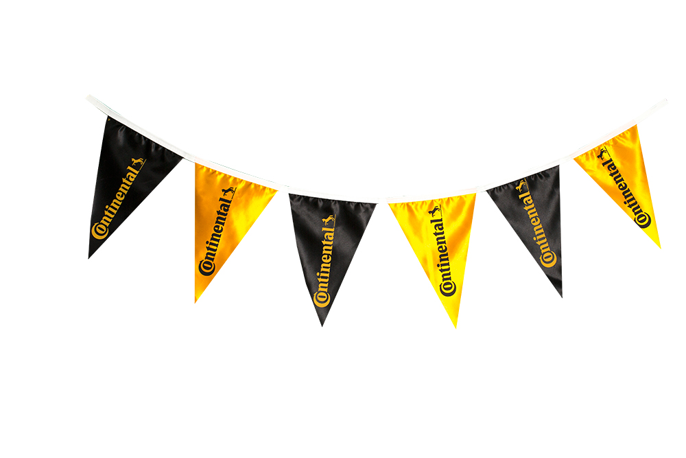 Süsleme ve Sıralı Bayraklar, özellikle dış mekân organizasyonlarında sıkça tercih edilen dekoratif bayrak türlerindendir. Fuar standları, açılış törenleri, akaryakıt istasyonları, etkinlik alanları ve meydanlar gibi geniş ve dikkat çekici alanlarda görsel bütünlük sağlamak amacıyla kullanılır. İpe dizili şekilde hazırlanan bu bayraklar, üçgen veya dikdörtgen formda olup, talebe göre farklı uzunluk ve ebatlarda üretilebilmektedir.