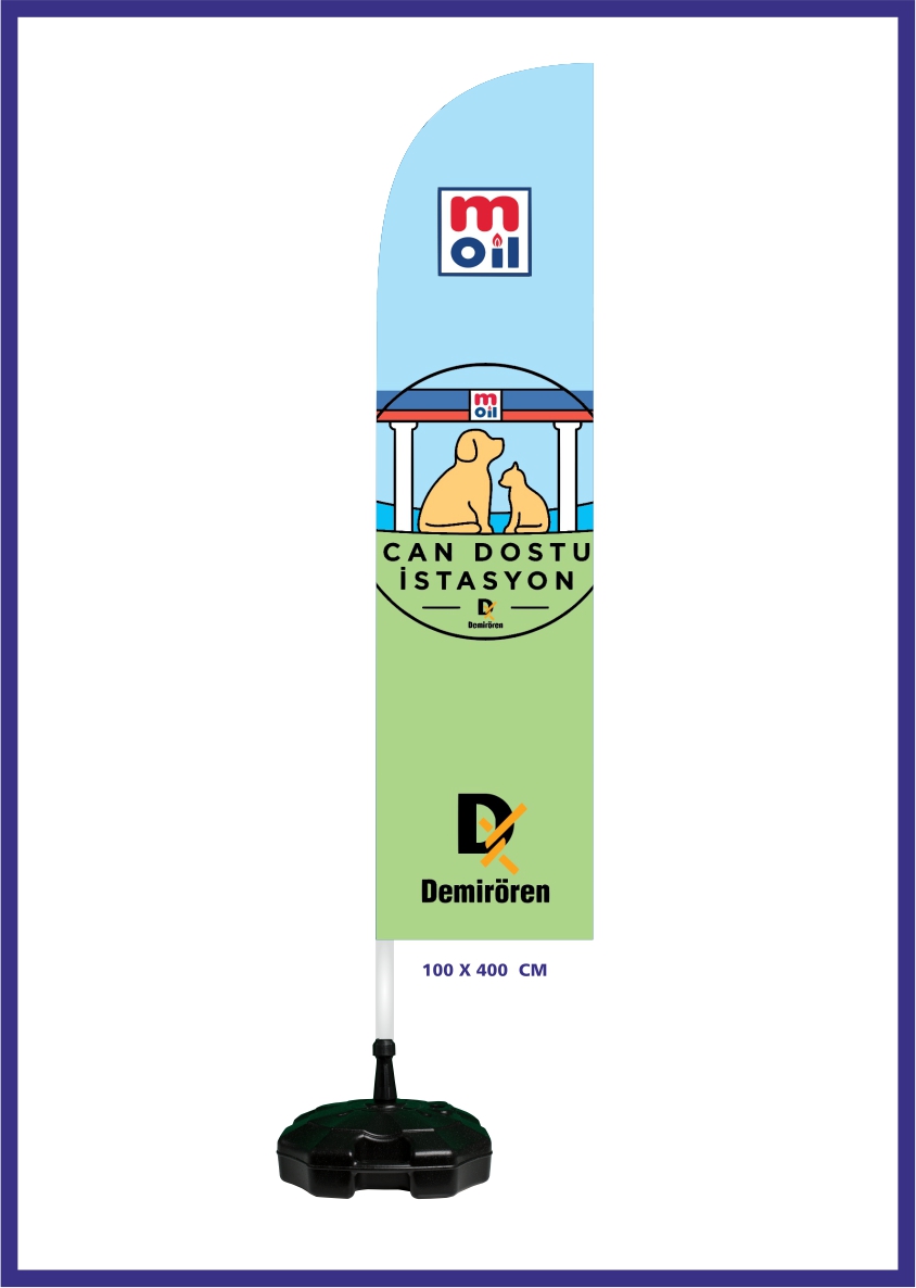 Modern çizgilere sahip olan bu bayrak modelleri; yaya trafiği olan bölgeler, sahil şeritleri, mağaza önleri, benzin istasyonları, alışveriş merkezleri ve benzeri birçok alanda etkili bir tanıtım aracı olarak kullanılmaktadır. Gösterişli tasarımı, rüzgâra karşı esnek yapısı ve taşıdığı kurumsal mesajla hem şıklığı hem de işlevselliği bir arada sunar.